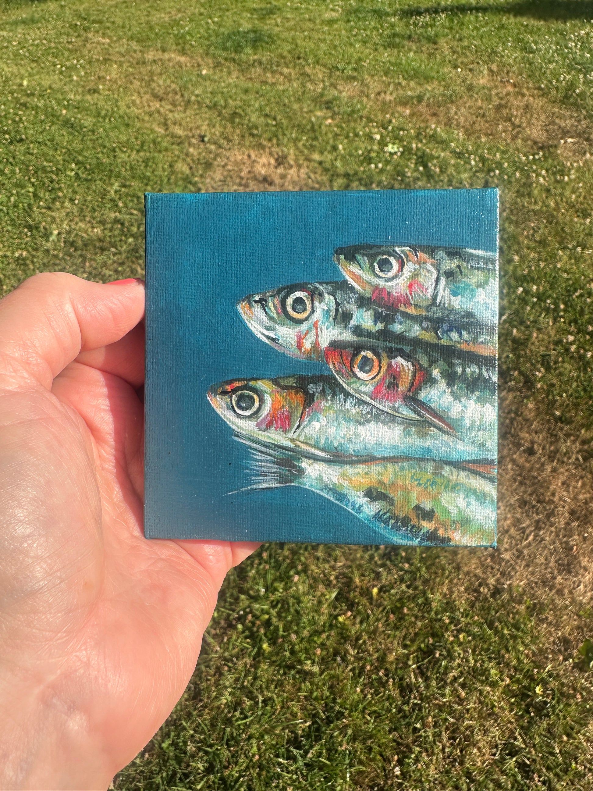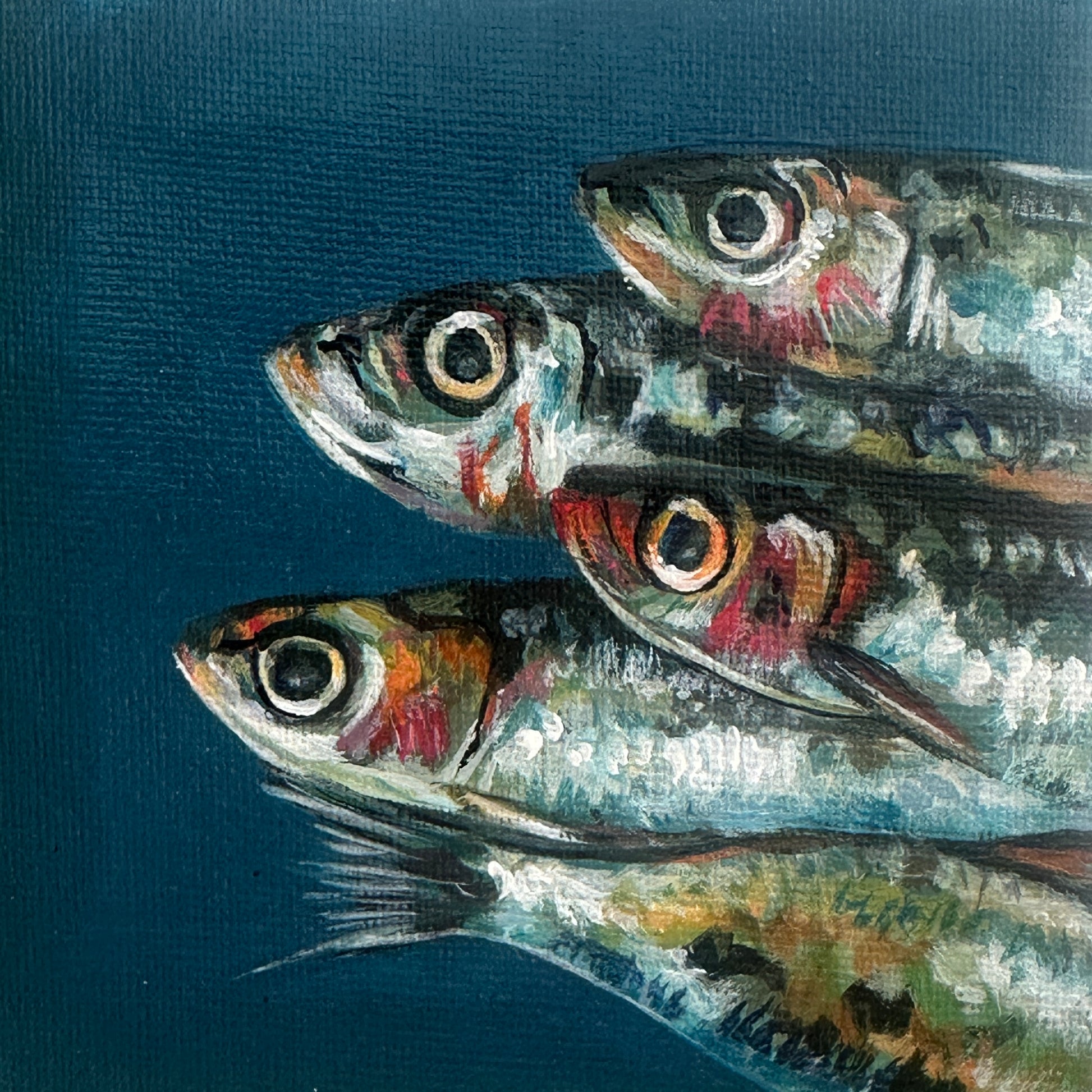 A second version of *5 Little Fish*, reimagined in turquoise tones. Familiar, but changed — like a memory seen through water. Now available as a richly detailed print.