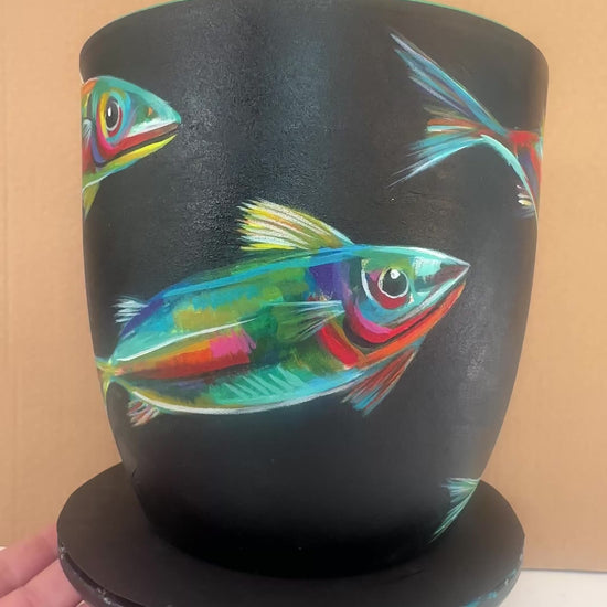 ‘Azure Drift’ – Hand painted Fish Pot (Large)